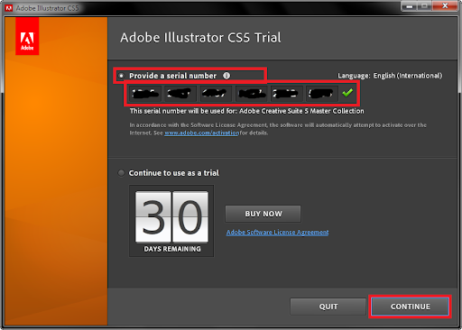 11. Now Open Illustrator. It will ask for serial number. Select "Provide a serial number" and enter a generated serial number from the keygen (Or Simply Paste it by Ctrl+V). When entered correctly click on "continue".